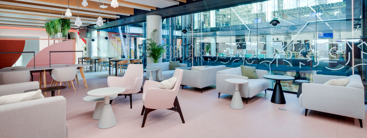 Sustainability underpins the design, with LEED Platinum certification and compliance with Ireland’s Nearly Zero Energy Buildings standard. The office also meets WELL-Gold standards, integrating biophilic design, natural light, and varied workspaces to improve employee wellbeing and productivity.